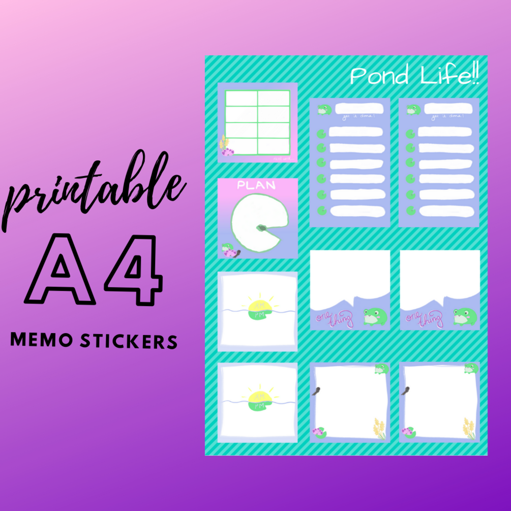 printable memo stickers with a frog and pond theme